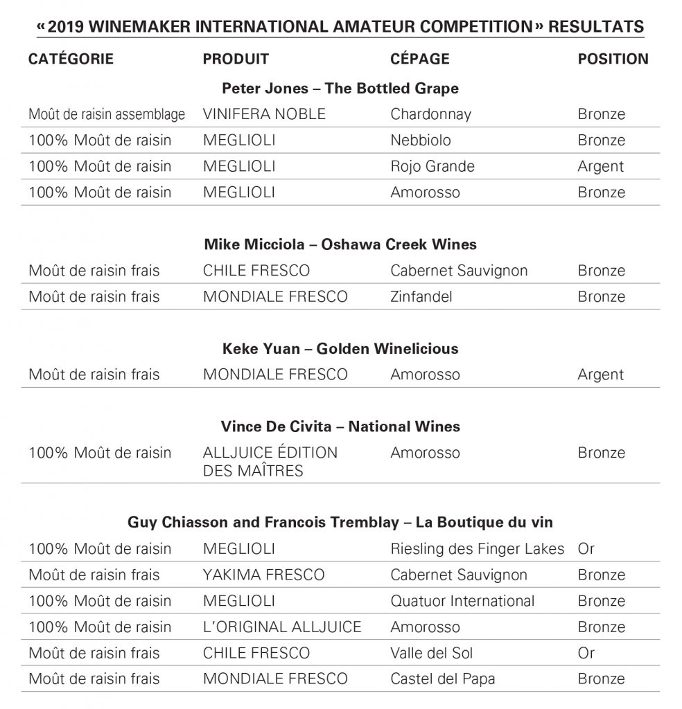 ‘2019 WineMaker International Amateur Competition’ Résultats