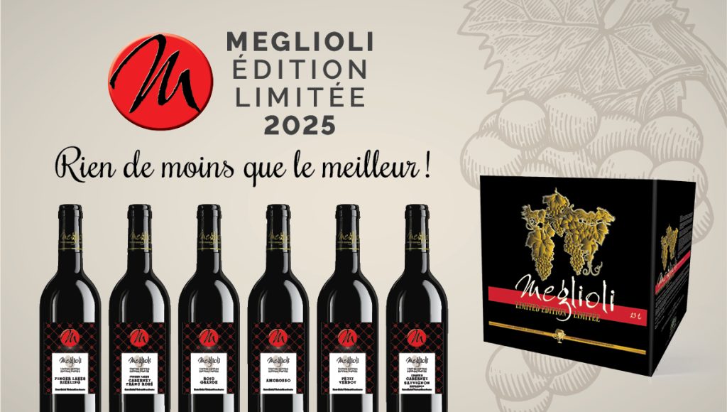 Pour garantir la disponibilité, réservez votre MEGLIOLI ÉDITION LIMITÉE ou avant le vendredi 17 janvier 2025. Renseignez-vous auprès de votre détaillant Mosti Mondiale.